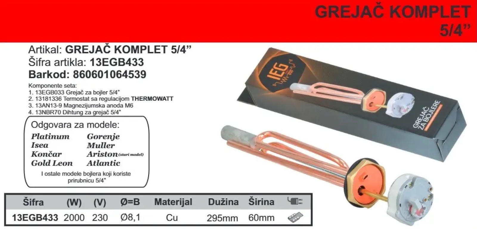 GREJAČ KOMPLET 5/4 13EGB433